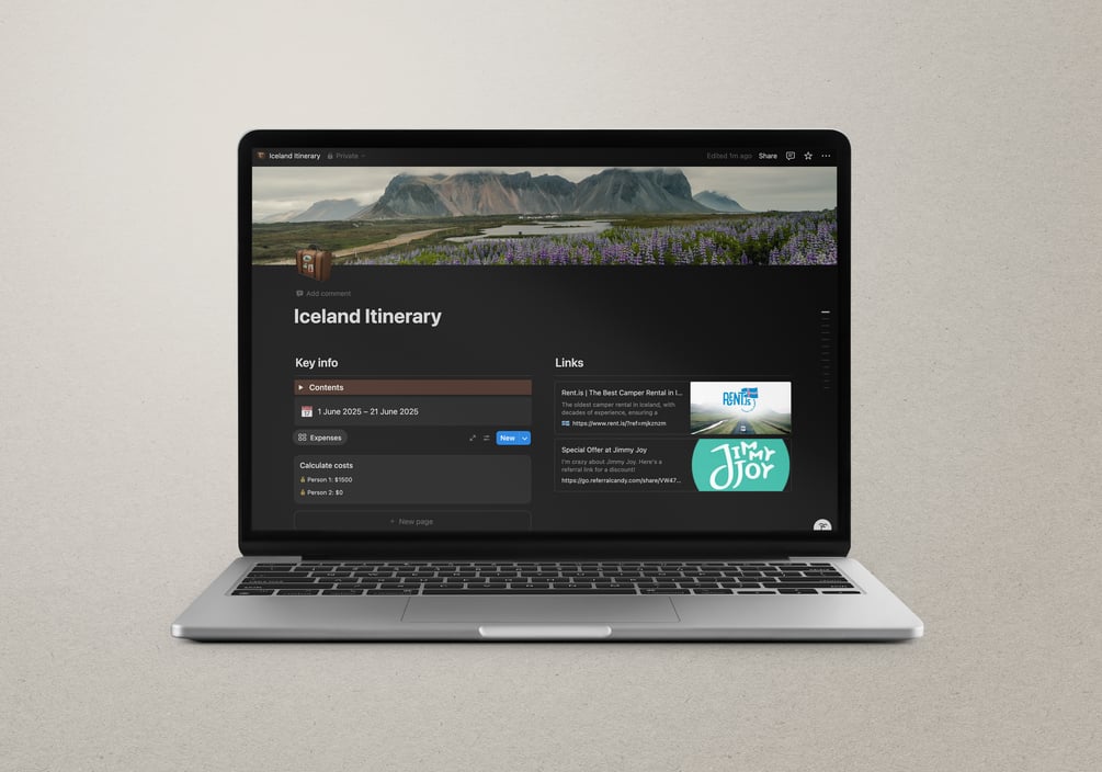 - Notion travel template that is ready to be used and altered to fit your travel.