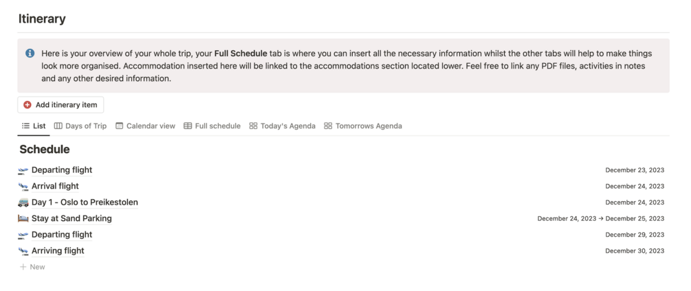 This Ultimate Notion Travel Itinerary Template has been carefully curated to include all the necessary components to plan your next holiday.